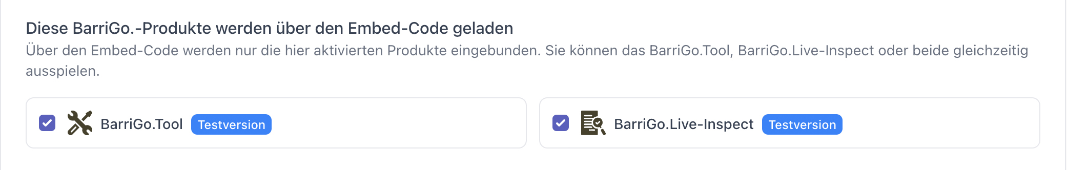 Das BarriGo.Tool funktioniert nur, wenn es dort aktiviert ist. Das Gleiche gilt für BarriGo.Live Inspect.